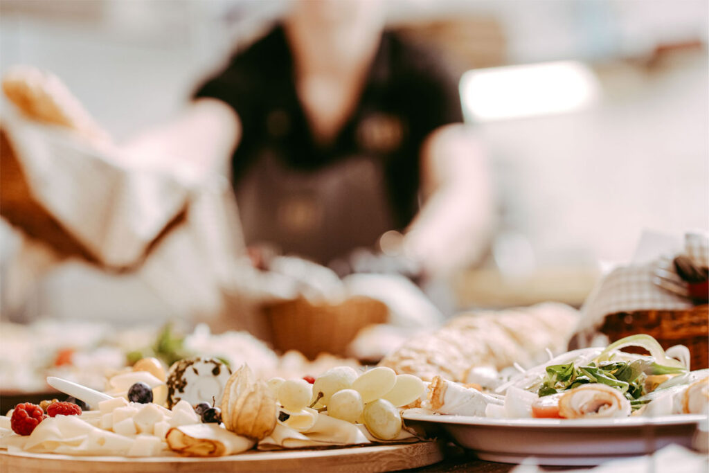 Dazu gehören Fleischspezialitäten von unseren Bio-Angus Weiderindern und Bio-Schweinen, in der hauseigenen Räucherkammer zu würzig schmackhaftem Rohschinken und Geselchtem gereift, hausgemachte Aufstriche unserer Markthof-Köche, vielfältige Käse und natürlich frisches Brot und Gebäck unserer Stammbäckerei, die unsere Eier verarbeitet.